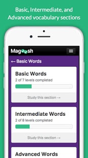 • Basic, Intermediate, and Advanced vocabulary parts are available.